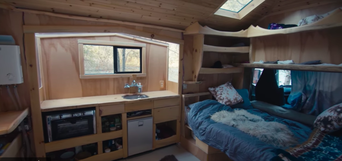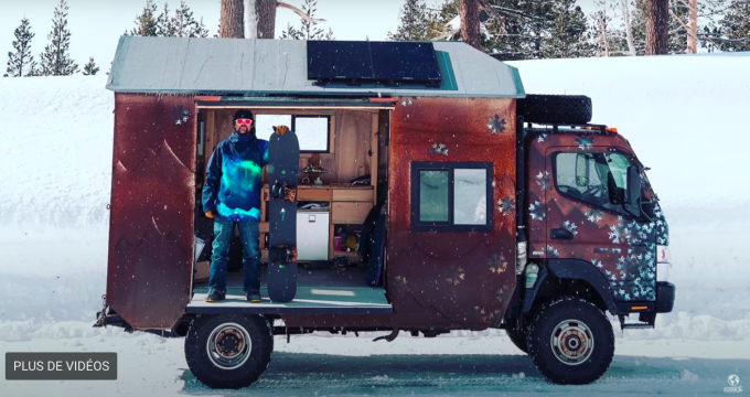 Après avoir construit une tiny house en 2015, pour pouvoir être au plus près des pistes, Mike Basich est toujours en quête d'aventure, de nature et de liberté. C'est pourquoi il a entrepris la rénovation du camping-car de ses rêves, un travail acharné qui lui a pris 16 heures par jour.