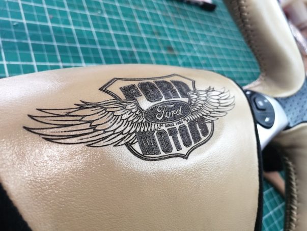 Le volant a été rénové à la manière des volants luxueux "Bentley". Fabien a voulu se challenger en reproduisant le design de la Bentley Continental GT sur la partie centrale du volant. Pour le tableau de bord, Family Découverte a souhaité rester dans un design sobre et épuré, dans les standards du VIP, tout en cuir.