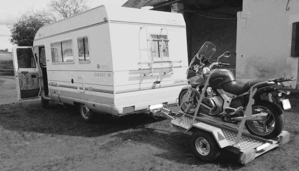 Merci à Pascale pour avoir partagé ses deux passions : le camping-car et la moto. Voici donc son Pilote Galaxy MX24 de 1995, sur base Citroën Jumper. Baptisé Ray Jack, cet intégral se montre compact (5,90 m) avec pour lit, le couchage de cabine, une dînette avec double banquette, une grande cuisine en long et enfin une salle d'eau. Ce modèle du constructeur nantais permet également à Pascale de tracter une moto Guzzi (de 2009) dénommée pour sa part Norge.