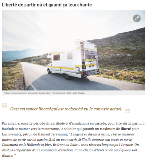 Sur RTBF, en Belgique, le camping-car est également plébiscité