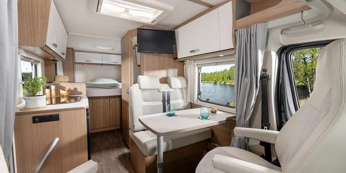 Enfin, Carado intègre dans son millésime 2021, un véhicule surprenant : il s’agit d’une capucine compacte de seulement 5,95 m de long et qui comprend pourtant 4 couchages permanents (l’un en pavillon et l’autre transversal sur soute). Et tout cela à un prix très compétitif, puisque la A132 est commercialisée à 42 070 € !