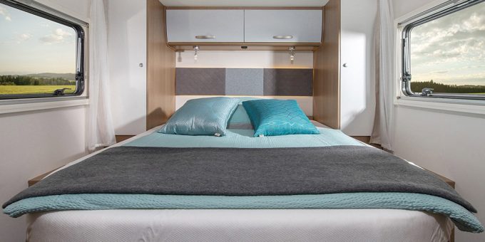 En ce qui concerne les profilés classiques, Carado fait entrer dans son catalogue le T459, déjà présenté au printemps dernier. Avec son salon face-face, la salle d’eau à double cloisonnement et le lit central, il est clair que ce modèle cherche à s'imposer sur le marché français. On notera, par ailleurs, que ce modèle, au même titre que les T135, T338 et T447, est disponible en éditions Clever et Clever+. Des packs spéciaux qui viennent enrichir considérablement le niveau d’équipement de base et que l’on peut également retrouver sur les fourgons de la marque. Pour finir ce tour d’horizon du constructeur, Carado a repensé son CV640 en termes de couchage. En effet, à la place du lit transversal sur soute précédemment, on trouve à présent des lits indépendants à l’arrière, qu’il est possible de réunir grâce à un sommier à lattes d’appoint.
