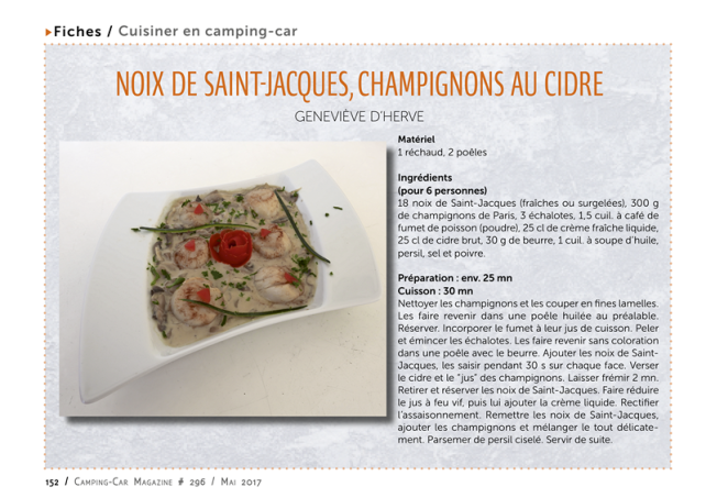 Il y a quatre ans, Camping-Car Magazine publiait les premières "Fiches Cuisiner en camping-car". Les recettes sont celles de nos lecteurs et des participants à la Fête Européenne du Camping-Car. Nous vous proposons de retrouver un plat raffiné présenté à la FECC 2016.