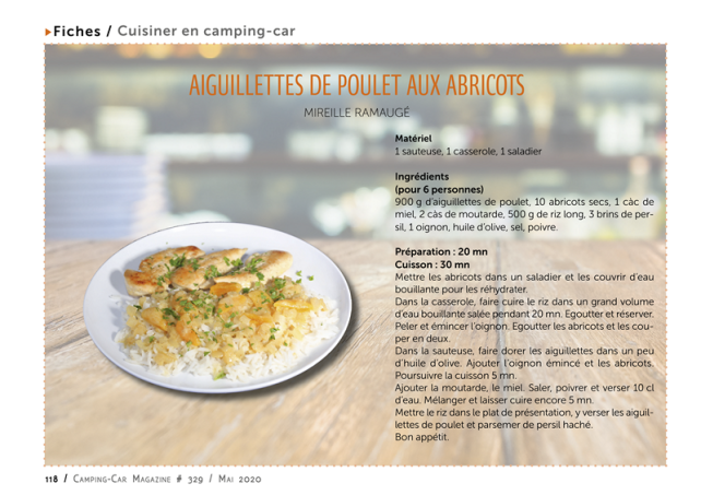 Cuisiner en camping-car : aiguillettes de poulet aux abricots