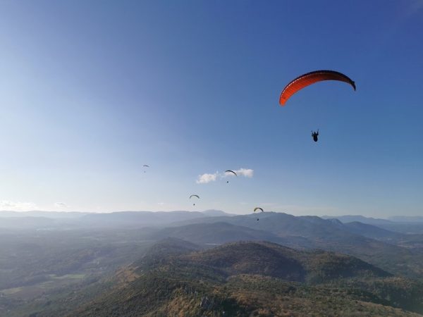Enfin, mardi soir, donc, un rayon de 20 km et un créneau de 3h nous est royalement octroyé. Pourquoi 20 ? Pourquoi pas 50 ? Pourquoi pas 5h ? L'essentiel est d'éviter les contacts et ne pas se retrouver à... 2 dans 8m2 ! Hum... bref... En ce qui me concerne, évidemment, cette largesse m'aura permis aujourd'hui dimanche de pratiquer à nouveau en toute "légalité" mon sport préféré, le parapente. Que ce fut bon ! que ce fut vivifiant et si jouissif ! un petit bonheur de liberté après 4 longues semaines sans cette bouffée d'oxygène, sans cet horizon immense, sans cette montée dans le ciel, presque comme un oiseau ! Magiques instants où tout redevient supportable, géant ! C'est sûr que notre sport, comme celui des surfeurs, se pratique en milieu naturel, sans contact et à distance (c'est souhaitable de ne pas avoir de collision en vol). Je n'ai jamais fait de prison, mais je suppose que ce sentiment de bonheur ressenti est le même que celui d'un prisonnier qui se retrouve à l'air libre pour la première fois. En tout cas, j'ai ressenti avec intensité cette joie, ce plaisir, cette ivresse, en 3D. Presque la vie normale, avec une attestation dûment remplie au cas où... et aucun sentiment de frustration, car la nature a aussi le droit de nous faire nous poser (la gravité) quand c'est le moment de rentrer, la tête plein de sensations d'ivresse, et les yeux pleins de ces paysages varois à perte de vue avec la mer Méditerranée au loin. Oui ce vol fut un plaisir géant. Juste gâché par l'impossibilité de boire un verre à une terrasse de café, ou de prendre un bon repas. Et là, je pense à nos amis cafetiers et restaurateurs, les premières et dernières victimes qui triment dur et qui ont tellement de mal à payer leurs charges alors que plus aucun client ne peut rentrer dans leurs établissements. Les reportages sont effarants et je me demande comment ils peuvent tenir mentalement, de voir les commerces non essentiels revivre depuis samedi et eux devoir rester bouclés. Nous vivons dans un monde affreux. Impitoyable, par les décisions qui varient de pays en pays.