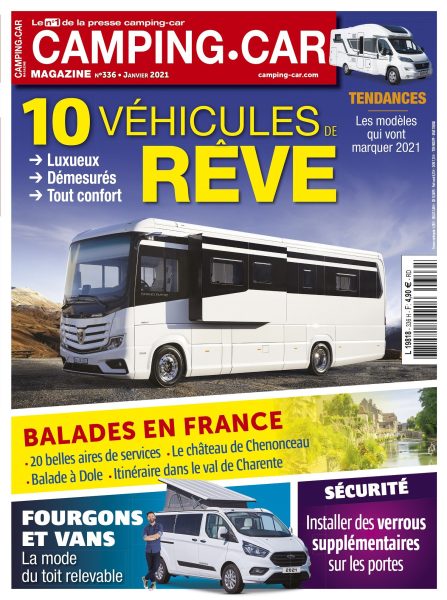 Ne manquez pas de faire un tour chez votre marchand de journaux pour vous procurer le nouveau numéro de Camping-Car Magazine ! Daté janvier 2021, ce numéro 336 consacre sa Une aux camping-cars de rêve. La Rédaction a sélectionné 10 véhicules luxueux aux dimensions hors norme qui offrent un très haut niveau de confort. Et si ces camping-cars font figure d’exception sur le marché français du véhicules de loisirs, ils empruntent tout de même certains agencements des derniers modèles des constructeurs généralistes. Ces tendances qui marquent les collections 2021, Camping-Car Magazine les a justement répertoriées pour vous les présenter en mettant en avant des modèles qui les adoptent avec succès, comme les fourgons présentés dans le Journal du Van. Notamment le toit relevable qui se popularise de plus en plus.