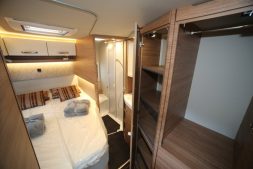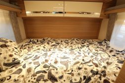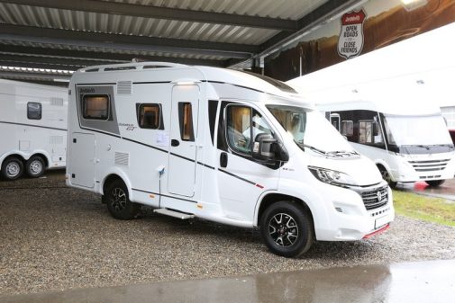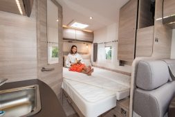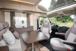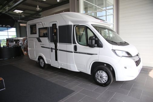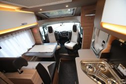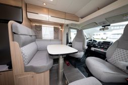 Chez Adria, la série Twin constituée de fourgons connaît un franc succès. Fort de ce constat, la marque slovène s’en est inspirée pour créer le profilé étroit Compact SP. La salle d’eau profite ainsi du système Duplex que l’on retrouve dans les fourgons Twin. Ce dispositif consiste à faire pivoter une paroi pour passer d’un classique cabinet de toilette (avec WC et lavabo) à une douche isolée et séparée. En bout arrière se trouve le lit transversal dont les dimensions sont 140 x 195 cm. Malheureusement, la largeur du couchage est tronquée au pied de près de 15 cm. Ce Compact SP a été modernisé. Un gros travail ayant été mené sur les ambiances intérieures. Le mobilier est plus clair. Il est mis en valeur par la lumière qui pénètre par le large sky roof intégré à la casquette de profilé. Commercialisé à 54 950 €, le Compact SP est disponible en version Plus avec un niveau d’équipement complet (radar de recul, stores de pare-brise, clim cabine…). Il existe aussi en finition Suprême différenciable au premier coup d’œil par la peinture métallisée gris alu de la cabine et de la carrosserie.