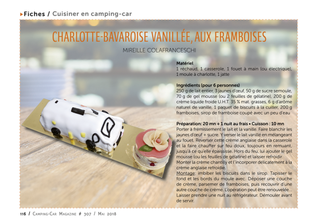 Montage : imbiber les biscuits dans le sirop. Tapisser le fond et les bords du moule avec. Déposer une couche de crème, parsemer de framboises, puis recouvrir d’une autre couche de crème. L’opération peut être renouvelée…