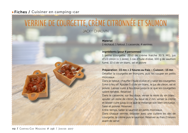 Dans chaque verrine, déposer avec une cuillère les dés de courgette, la crème puis le saumon. Réserver au frais 2 heures avant de servir.