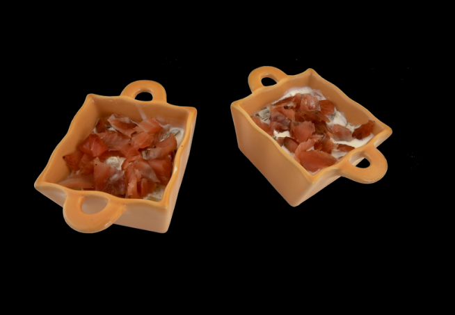 Entre-temps, tailler le saumon en petits morceaux.