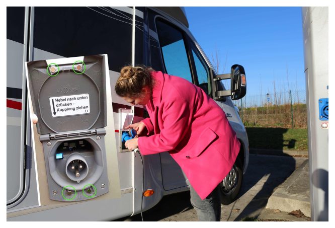 Pour réparer cette anomalie, Thomas Middelstorb, lecteur de Promobil a eu l'idée de coller de petits aimants sur le volet et le boîtier de la prise 220 volts. Cette astuce toute simple à mettre en œuvre et peu coûteuse se montre très efficace.
