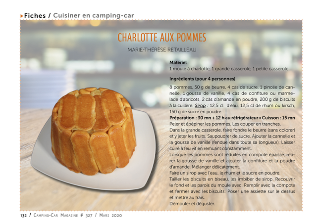 Camping-Car Magazine publie ses "Fiches Cuisiner en camping-car" depuis 2017. Voici un dessert classique, mais gourmand, d’une participante au concours cuisine de la Fête Européenne du Camping-Car, édition 2019. Fiche à découper dans notre numéro 327.