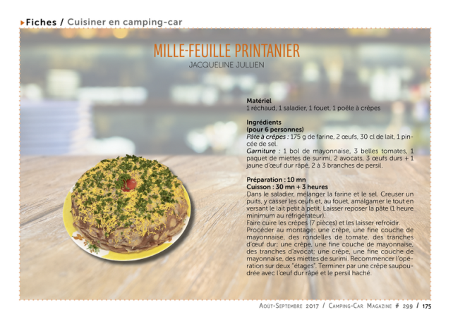 Camping-Car Magazine publie ses "Fiches Cuisiner en camping-car". Voici une entrée de printemps, proposée par une participante au concours de cuisine de la Fête Européenne du Camping-Car 2016. Fiche à découper dans notre numéro 299.
