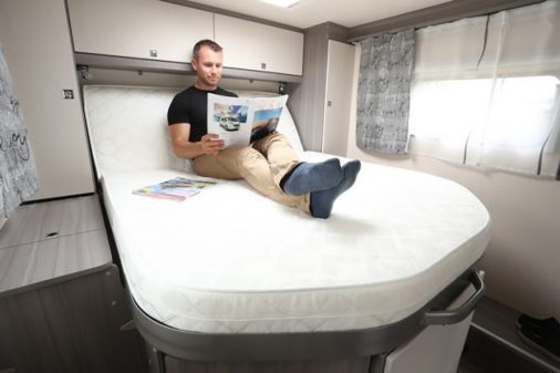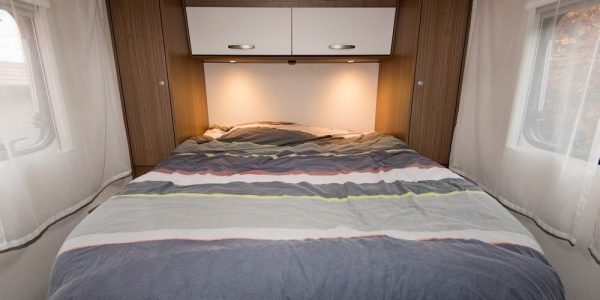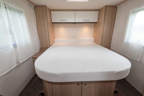 Assez discrète sur le marché français, la marque allemande Hobby propose pourtant des modèles dignes d’intérêt, à l’image de ce V65 GQ Optima Ontour Edition, un profilé affichant une largeur contenue de 2,16 m, mais également une longueur de seulement 6,99 m, ce qui ne l’empêche pas de se parer d’un grand lit central de 2 m de long pour une largeur suffisante de 140 cm. Précisons que la tête de ce dernier se relève en poussant sur le pied afin de faciliter les déplacements en chambre. En partie jour, nous retrouvons une classique banquette deux places face route et une cuisine à l’entrée. La salle d’eau reste la partie quelque peu sacrifiée avec un espace réduit.