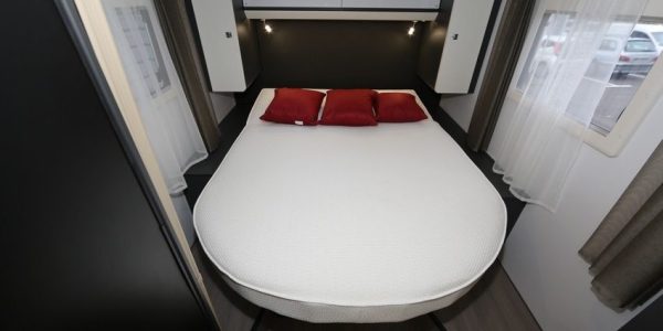 Il fait bon vivre à bord de ce Rapido C86. Malgré sa cellule de seulement 2,17 m de large, il offre tout le confort que l’on est en droit d’attendre d’un profilé et se permet même d’offrir LA tendance du moment à savoir la conjugaison du lit central (140 x 196 cm, réglage en hauteur en option) et du salon face-face (pour quatre seulement…), le tout dans un véhicule à la longueur de seulement 6,99 m. La dînette est même agrémentée d’un skyroof offrant une très belle luminosité. Comble du raffinement, ce C86 offre une douche séparée du cabinet de toilette avec la possibilité de réunir les deux et de les isoler du reste de la cellule. Enfin, notons le chauffage sur gazole, permettant une meilleure autonomie en gaz.