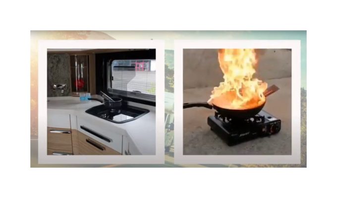 L'incendie est un dommage que quiconque redoute où que l'on se trouve. Dans un camping-car plus qu'ailleurs, à cause notamment des matériaux inflammables dans lesquels nos véhicules sont fabriqués (bois, mousse isolant, plastique, résine...). Il est donc essentiel de circonscrire un incendie dès ses débuts. Il y a bien sûr l'extincteur que tout véhicule se doit d'avoir à bord. Encore faut-il savoir l'utiliser rapidement en faisant abstraction du stress auquel on est confronté dans une situation d'urgence. Par ailleurs, pour éteindre un feu de friteuse (l'huile de la casserole qui s'enflamme), ni l'extincteur, ni l'eau ne doivent être utilisés car ils provoqueraient encore plus de dégâts. Pour éteindre un feu d'huile, il faut l'étouffer. Les pompiers précisent qu'il faut délicatement recouvrir le récipient en flammes d'un linge humide.