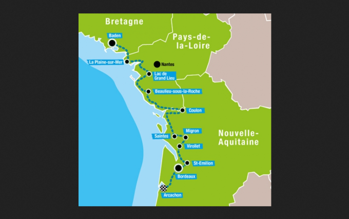 Réalisé en partenariat avec le guide France Passion, ce premier périple de 13 jours et 900 km débutera à Le Hézo, en Bretagne, pour une arrivée au Bassin d'Arcachon. Au programme sont prévues de nombreuses surprises, dont un baptême en hélicoptère, de belles visites (Terre de Sel, Ecomusée du cognac, Cité du Vin à Bordeaux) et même une croisière en bateau, sur la Charente.