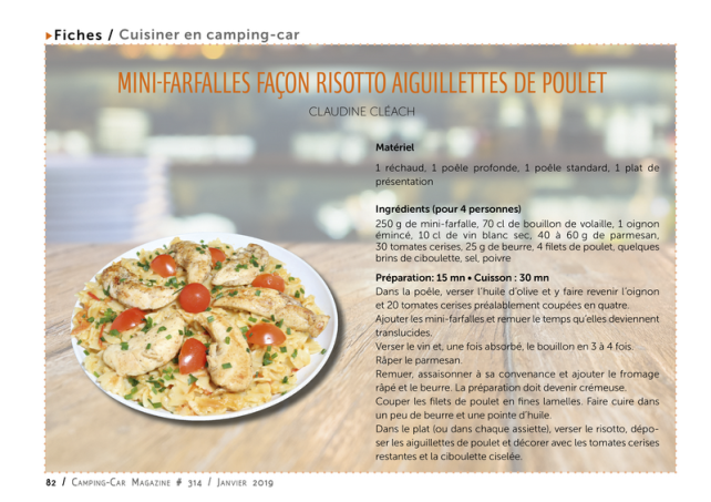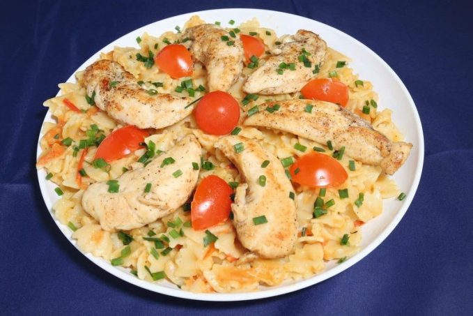 Mini-farfalles façon risotto, aiguillettes de poulet