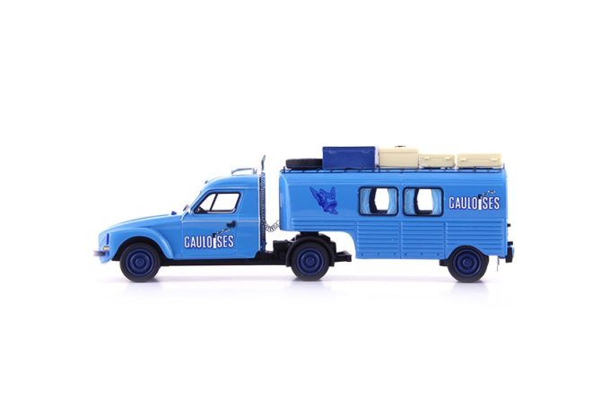 La plus complexe d'entre elles pris l'allure d'un petit semi-remorque utilisant une Acadiane. Si le style du tracteur reprend celui de la version commerciale de la Dyane, avec un pot d’échappement montant à l’arrière et un gros klaxon sur le toit inspirés des trucks américains, la remorque est constituée elle de deux cellules de 2CV fourgonnette. Elles sont assemblées tête-bêche et reprennent les lignes de l’utilitaire de la marque aux chevrons. A travers ses quatre vitres, il est possible de découvrir son aménagement intérieur façon camping-car. Sur son toit trône une immense galerie chargée de matériel et d'une roue de secours.