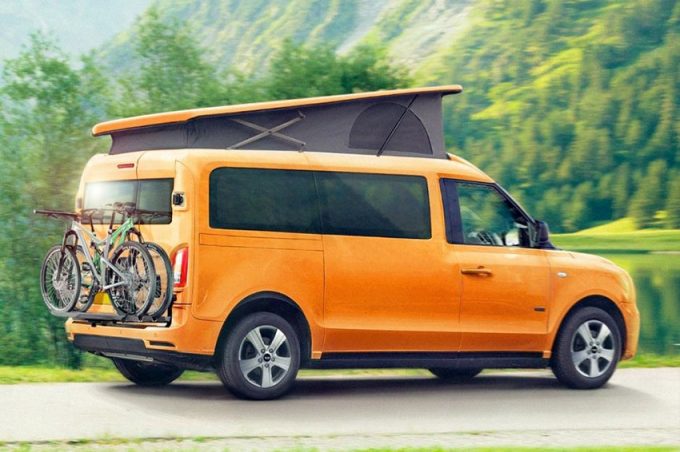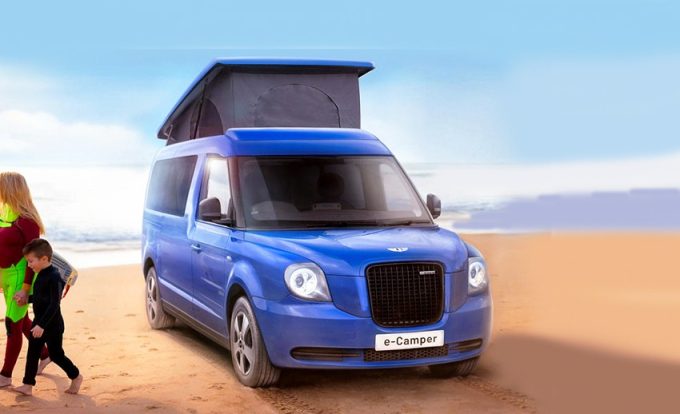 Dérivé des nouveaux Taxi TX, basés sur l'utilitaire de livraison VN5 Van de la marque London Electric Vehicule Company (LEVC), une filiale du groupe automobile chinois Geely, le e-Camper en reprend sa sympathique ligne rétro.