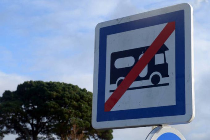 Ils sont des dizaines garés sur le parking du Super U, des camping-cars investissent les lieux depuis près de trois ans. Pourtant, le stationnement est interdit, un panneau décliné en 5 langues avertit ceux qui souhaiteraient s’y installer.