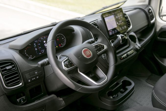 L’existence d’une multitude de packs permet aux constructeurs de proposer aux clients des assistances fort pratiques comme le verrouillage des portes de cabine sans clef, ou encore un frein à main électrique, un compartiment de recharge de smartphone par induction, des ports USB, types A et C, une prise électrique 230V en cabine, un pare-brise chauffant avec résistances internes, pour un dégivrage éclair. Le combiné multimédia central est pourvu du système U-Connect et peut recevoir un écran tactile de 7 ou 10 pouces.