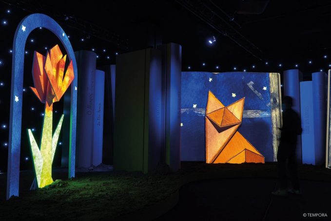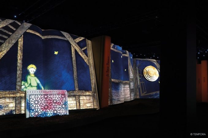 La réouverture de l’exposition coïncide avec le 75e anniversaire de la parution, en France, de l’œuvre la plus célèbre d’Antoine de Saint-Exupéry, Le Petit Prince. Répartie sur plusieurs espaces, l’exposition offre une immersion dans le monde merveilleux de l’écrivain et de son récit, d’un point de vue visuel, expérimental, sensoriel. A travers un parcours thématique, le visiteur se promène dans un univers surréaliste et enchanteur : les sculptures flottantes d’Arnaud Nazare-Aga et une mise en scène empreinte de fantaisie et de rêverie y participent. On y retrouve bien sûr les images enchanteresses du Petit Prince : la rose, le mouton, le renard et les couchers de soleil…