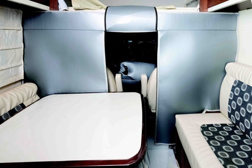 Un tablier isolant, comme le Diviseur isotherme de chez Soplair, peut être mis en place, à l'étape. Il se fixe entre le poste de conduite et le salon attenant. Prévoyez un budget de 105 €.