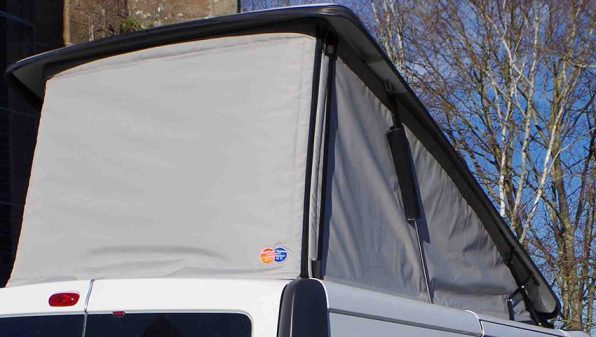 Les utilisateurs de vans et fourgons à toit relevable se doivent de ne pas oublier la chambre en partie supérieure de leur véhicule. Selon la place dont on dispose dans le coffre, il est possible d'isoler la toile en pavillon par l'intérieur ou de l'extérieur.