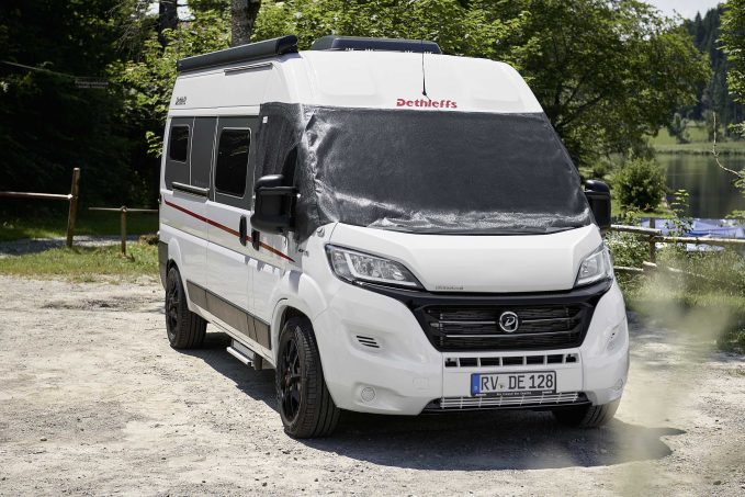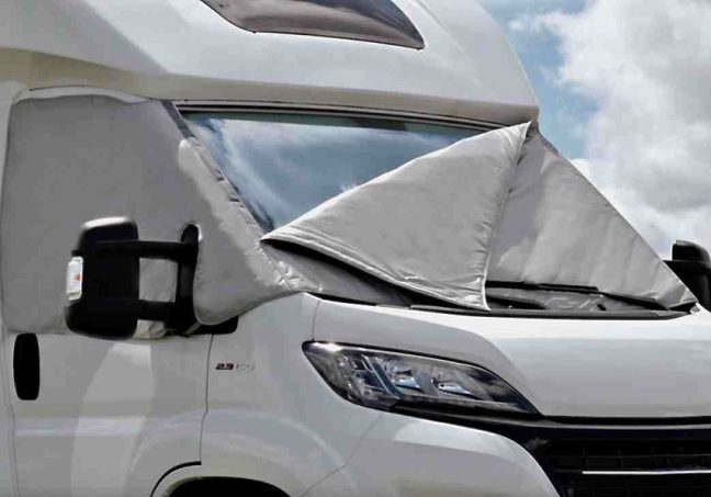 La marque française Clairval commercialise le volet Isoval Luxe, une protection étanche "4 saisons" contre le froid et la chaleur à placer sur le pare-brise. Il s'adapte aussi bien au Fiat Ducato qu’au Ford Transit. Comptez à partir de 374 €.