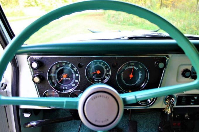 Au-delà de cet accessoire de mort, la restauration de ce pick-up Chevrolet de 1968 est admirable. Idem pour l’intérieur de la cellule amovible très bien aménagée et apportant un maximum de confort aux utilisateurs.