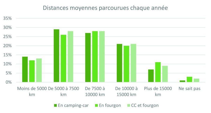 En moyenne, les “fourgonnistes” réalisent entre 9 300 et 10 300 km par an, quand les possesseurs d’un camping-car traditionnel parcourent entre 8 300 et 8 630 km.