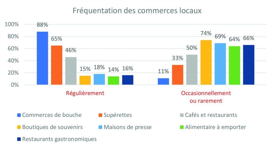 L’enquête Ipsos nous apporte une réponse en publiant plusieurs chiffres. Il est indiqué que la moyenne des dépenses quotidiennes (hors carburant) des camping-caristes s’établit à 38,45 € (39,30 € quand le camping-car est neuf et 37,60 € pour les occasions). Mais surtout, un utilisateur sur cinq affiche un budget journalier supérieur à 50 €. Le tableau ci-contre (en bas) montre la fréquentation par type de commerces. Ce document prouve de toute évidence que les camping-caristes privilégient les petits commerces, en dépensant leur argent dans les circuits courts. Une attitude louable en tout point de vue : économique, sociologique et écologique.