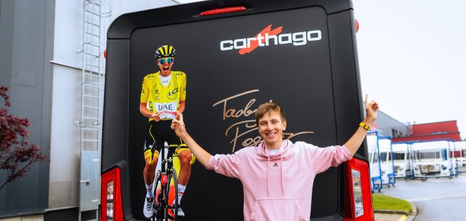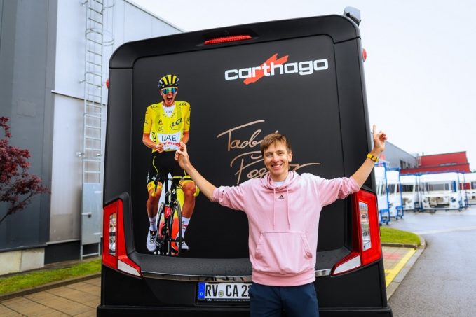Entre Tadej Pogačar et Carthago, l'aventure continue. Le constructeur allemand de camping-cars a renouvelé son partenariat avec le cycliste, vainqueur de la dernière édition du Tour de France.