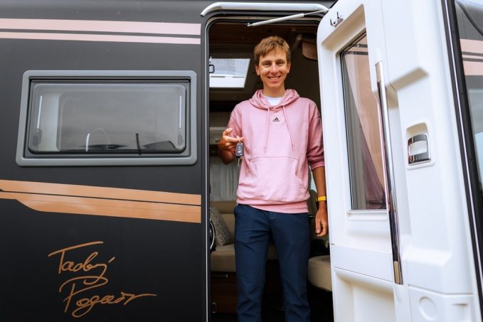 On prend les mêmes et on recommence ! Fidèle à cette devise, Carthago soutient cette année encore le cycliste slovène Tadej Pogačar en fournissant un modèle de son catalogue de la gamme c-CompactLine. Ce véhicule va servir de base lors de ses courses dans toute l’Europe. La remise des clés a été réalisée le 7 mai. Tadej Pogačar est sans doute le coureur cycliste le plus en vue actuellement. Le jeune homme de 23 ans a notamment remporté le Tour de France en 2020 et 2021. Le Slovène, habitué aux victoires, a commencé l’année cycliste 2022 avec beaucoup de succès : il a remporté la première place de l’UAE Tour et des classiques printanières Strade Bianche et Tirreno–Adriatico. La star du cyclisme a de nouveau de grandes ambitions pour les deux grands événements que sont le Tour de France en juillet et le Tour d’Espagne La Vuelta qui suivra peu après.