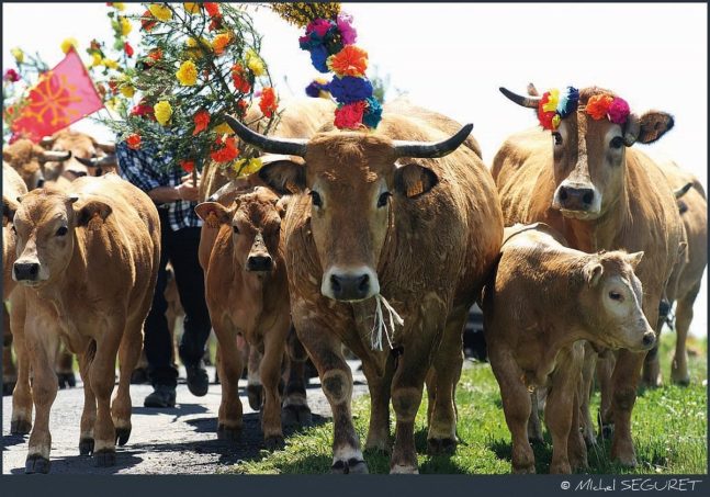 S’il est une fête qu’il ne faut pas manquer en Aubrac, c’est celle de la Transhumance organisée par l’association Traditions en Aubrac. Après avoir passé l’hiver au chaud dans les villages, les troupeaux de vaches rejoignent les pâturages pour passer l’été : un moment inoubliable. Les festivités commencent dès le jeudi, mais les temps forts sont plutôt le week-end. Le samedi, place au salon du terroir à Saint-Chély-d’Aubrac (12) ! Le dimanche est ponctué par le passage de sept troupeaux sur la place du village. Les éleveurs sont mis à l’honneur et parlent volontiers de leurs pratiques. Une balade présentant les plantes des pâturages, des rencontres avec des éleveurs transhumants, déjeuner et dîner dansant complètent agréablement le tableau des animations.