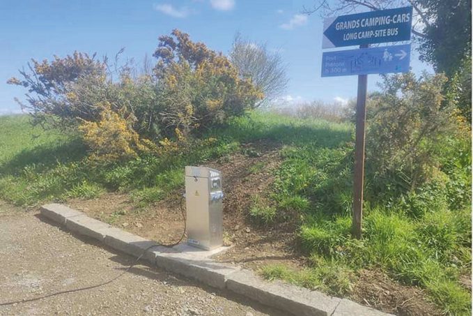 Le nouvel aménagement comprend deux bornes de vidange, chacune étant munie d’une prise électrique 16 A. Les usagers peuvent aussi se fournir en électricité sur la borne spécifique équipée de 4 prises de 16 A. Rue de la Ville-Ballet. GPS: (N) 48°40’12”/(O) 1°51’56.