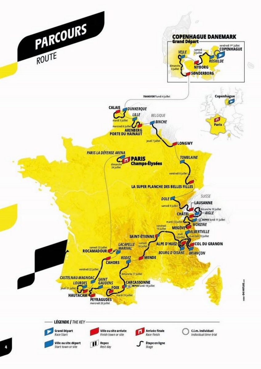 Après un grand départ donné depuis le Danemark, quelques jours dans le nord de la France, et un bref passage en Belgique, le tracé de cette 109e édition aborde les Vosges, le Jura, les Alpes, le Massif central, puis les Pyrénées pour la dernière semaine de course. Dans la plupart des communes de départ et d’arrivée, un alléchant programme d’animations et de festivités sportives, culturelles et gastronomiques, se met en place. A consulter sur le site des offices de tourisme, tout comme les mesures de dernière minute concernant la fermeture des routes, la mise en place de navettes et des aménagements dédiés aux camping-­caristes, qui n’étaient pas toutes connues lors de ce printemps.
