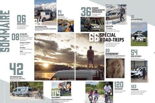 N’oublions pas les essais Pössl 540 Shine et Campervans Mont-Blanc Expédition, pour rêver un peu plus, ainsi que la rencontre avec des vanlifers comme la skieuse olympique Tina Maze et FrenchChris l’éternel optimiste. Vous découvrirez aussi les nouveautés 2023 en vans et fourgons.
