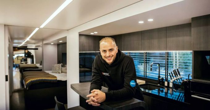 Pour le ménage, l’engin a été doté d’une centrale d’aspiration, d’un lave-linge et d’un sèche-linge.