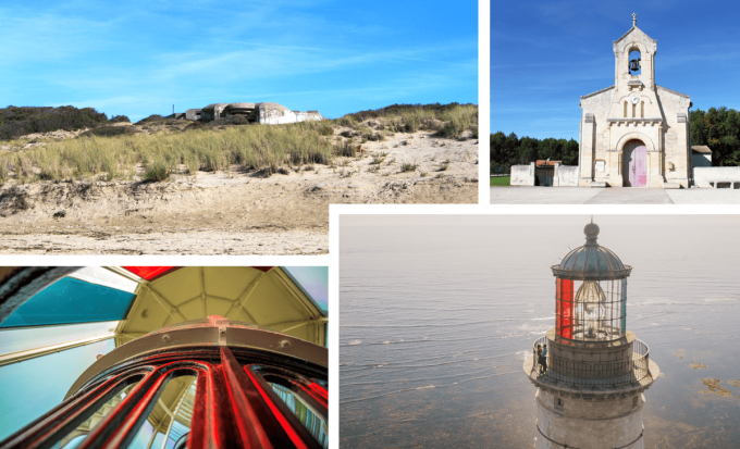 Caché sous le cordon dunaire à Verdon-sur-Mer, le phare Saint-Nicolas ne se visite pas mais se découvre par son architecture extérieure le temps d’une balade.