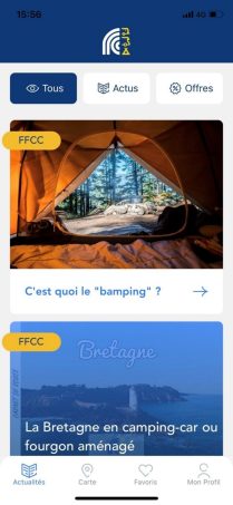 Elle est disponible gratuitement sur les plateformes Google Store et AppStore. Grâce à cette application, vous obtiendrez des informations sur la pratique du camping et l’attrait touristique des régions françaises, ainsi que des points d’intérêt, comme les aires de services dans un département ou les campings ouverts à proximité du lieu où vous circulez. D’autres services plus précis sont livrés aux seuls adhérents de la FFCC. Il est possible également d’adhérer à la Fédération en quelques clics, sur l’écran de votre smartphone.