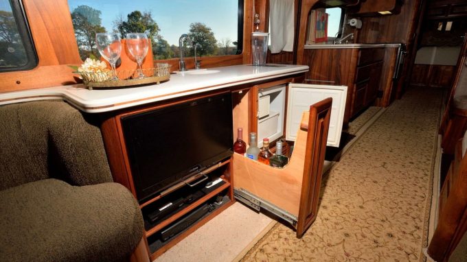 Le propriétaire a remplacé le moteur et la transmission avant de complètement rénover l’intérieur afin d’en faire un motorhome luxueux. Il est maintenant propulsé par un moteur 6-cylindres, Cummins ISL-350 de 8,9 litres, couplé à une transmission automatique Allison à 6 vitesses. Il est également équipé d'un régulateur de vitesse à commande électronique, d'un système de mise à niveau et de roues en aluminium poli Alcoa avec pneus Michelin.