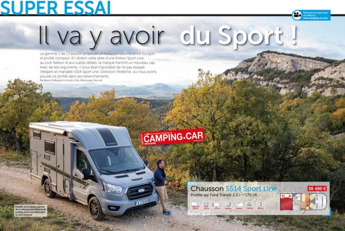 Le super essai du mois concerne un camping-car la série S de la marque Chausson. Nous vous présentons, en détail, le S514 Sport Line.