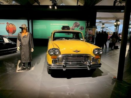 Ces autos sont mises en valeur par une belle scénographie colorée rappelant l’époque du pop art avec des explications concises et pédagogiques sur l’utilisation des véhicules dans chaque film cité.