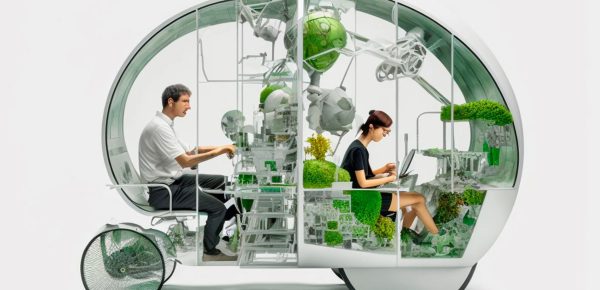Ulises Design Studio a créé d’autres véhicules, toujours en exploitant la force de l’Intelligence Artificielle. Nous avons notamment découvert ces bureaux mobiles constitués d’une bulle en verre, végétalisée, et supportée par un vélo, une moto ou un tricylcle. Étonnant non ?