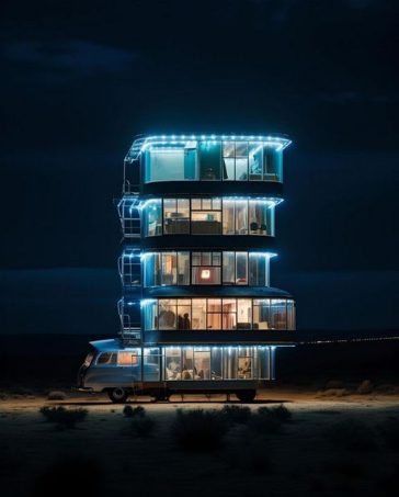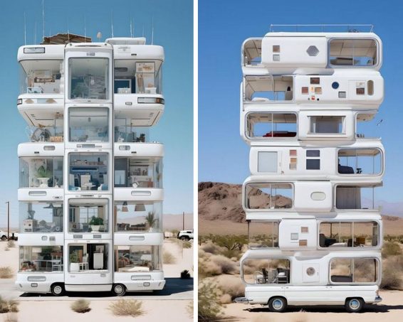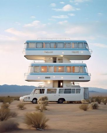 Ces images, d’un réalisme impressionnant, sont pourtant parfaitement fausses. Elles ont été créées par Midjourney, un programme d’intelligence artificiel. Le studio de Design Ulises vient d’utiliser cet outil pour créer des images de camping-cars à étage.