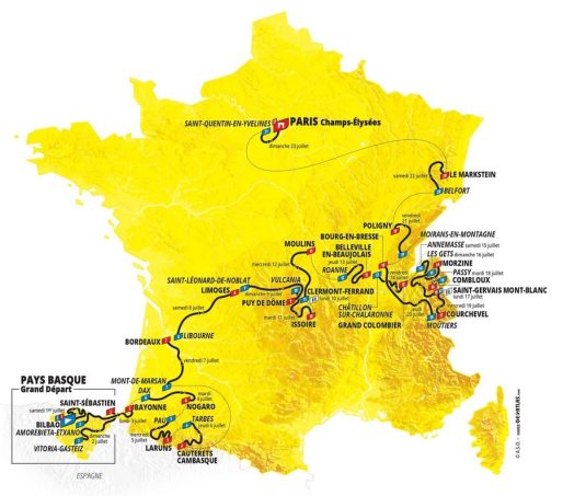 A la veille de l’arrivée sur les Champs-Elysées, la traversée nerveuse des Vosges promet encore un beau spectacle, avec six difficultés principales et un total de 3 600 m de dénivelé positif. Depuis le Lion de Belfort, cap sur le Ballon d’Alsace (1 173 m) soit 11,5 km à 5,3 %, déjà conquis en 1905 par les pionniers du Tour de France. Après une phase de transition dans la vallée de la Moselle, la course aborde les 5,2 km à 7 % du col de la Croix des Moinats (890 m) qui toise la station de La Bresse. La courte montée de 3,2 km à 8 % du col de Grosse Pierre (944 m) permet ensuite de découvrir le magnifique écrin boisé du lac de Gérardmer. Les montées se succèdent avec les cols de Feignes (954 m) et de la Schlucht (1 139 m) avant de dégringoler dans la vallée fleurie et fromagère de Musnter. Le Petit Ballon (1 163 m) prend le relais avec 9,3 km à 8,1 %. Derniers efforts pour les coureurs avec les 7,1 km à 8,4 % du col de Platzerwasel (1 193 m), pour déboucher au Markstein (1 192 m) quelques kilomètres plus loin, petite station de loisirs d’été et d’hiver sur le territoire de la commune de Fellering.