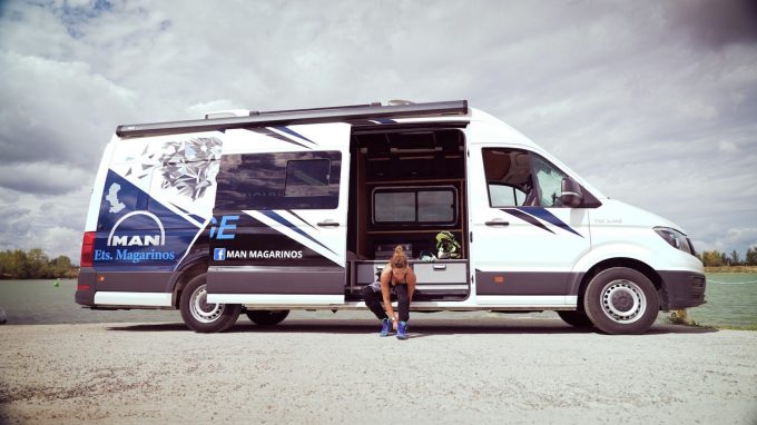 Les sportifs professionnels travaillent régulièrement avec des marques de véhicules de loisirs. Il faut dire que certains sports se prêtent parfaitement à pratique du fourgon ou du camping-car. Ici, c’est Jessica Chavanne, actuellement en tête du championnat du monde 2023 de jet-ski qui s’équipe d’un véhicule Man TGE de 140 ch pour parcourir l’Europe et ainsi transporter son jet-ski en toute sécurité. En effet, ce véhicule peut embarquer directement les engins motorisés dans le véhicule à l'abri des regards indiscrets.