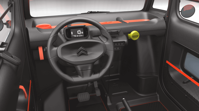 L'esprit pratique demeure aussi avec la présence de plusieurs équipements de série, tels que la pince pour smartphone, les filets de porte, et le boîtier de connectivité Dat@mi. Pour l'info-divertissement, l'interface My Ami Play permet de transformer n'importe quel smartphone en tableau de bord avec des accès rapides à la navigation, la musique, la radio ou les appels téléphoniques. Ces derniers sont pilotés à distance par le bouton Citroën Switch à positionner sur la volant afin de rester concentré sur la conduite.